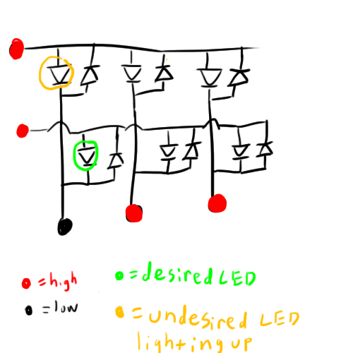 The issue is this: If I want to get maximum brightness out of my LEDs, I’m going to want to overdrive them a bit because I can run them at a maximum of33.3% duty cycle (if I have three LEDs lighting up at the same time). LEDs that are rated for 20mA of constant current might be rated for up to 100mA of peak current. Apparently, nobody make a 40+mA constant-current LED driver that runs at 3V. Oh well. Continue reading